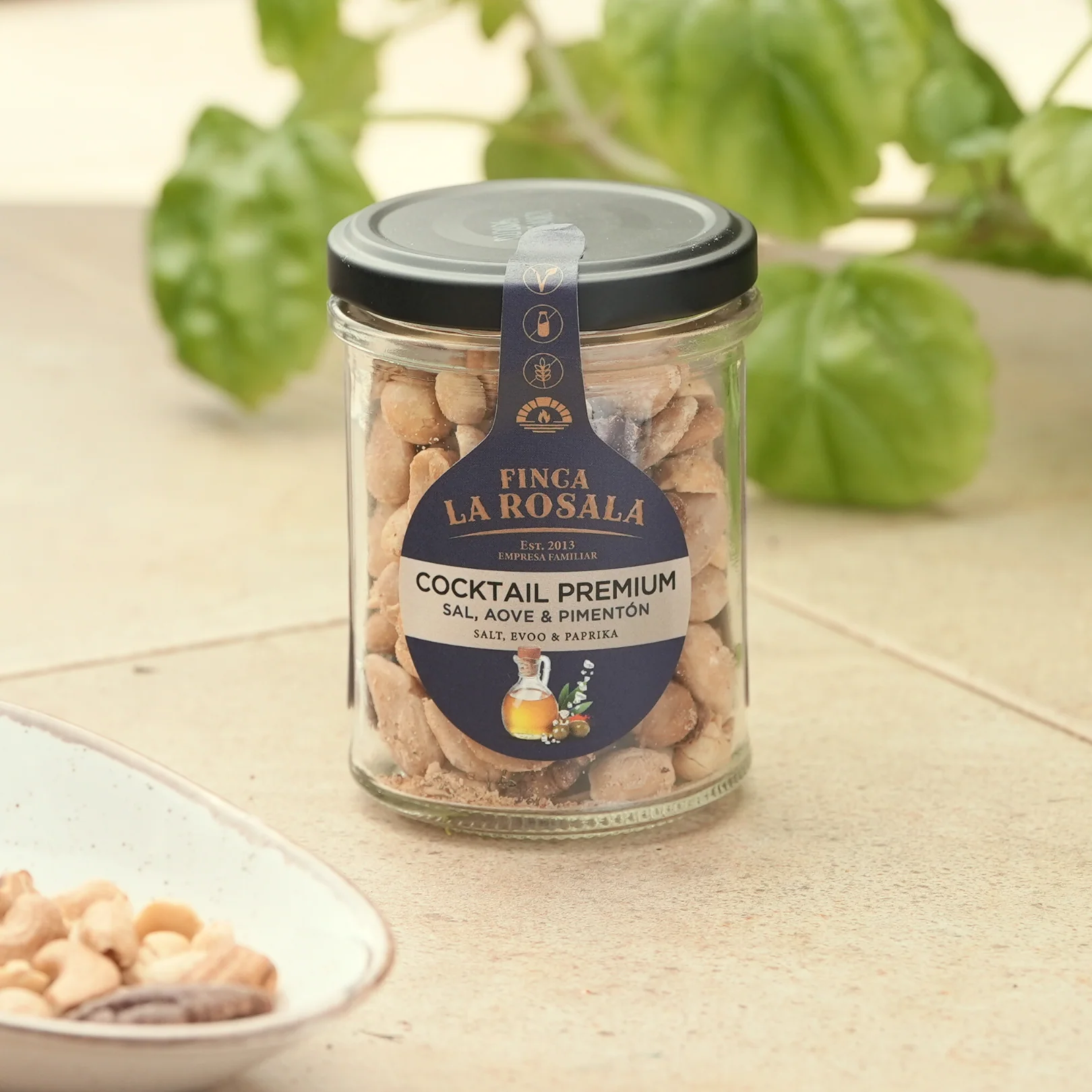 Ingredientes: Cacahuetes sin piel (50%), Almendras Valencia sin piel (25%), Anacardos(15%), Pecana (10%), sal, azúcar de caña integral*, pimentón de La Vera*.