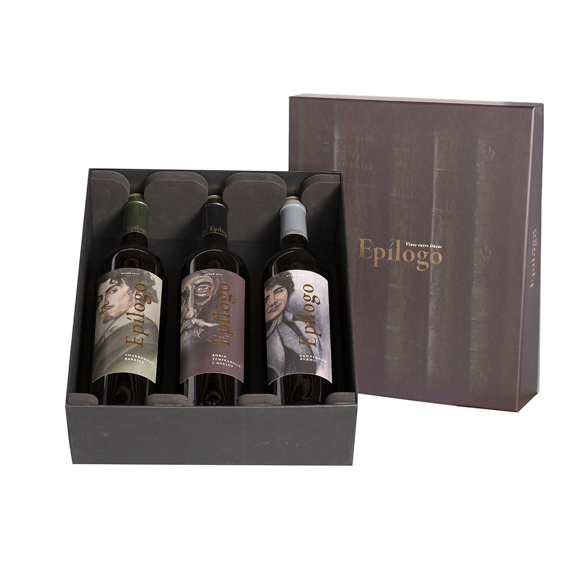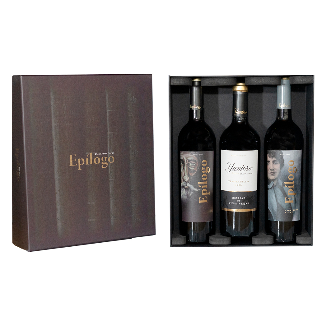 Fantástico estuche donde  disfrutarás de  la gama de nuestros vinos Epílogo junto con Yuntero reserva viñas viejas.